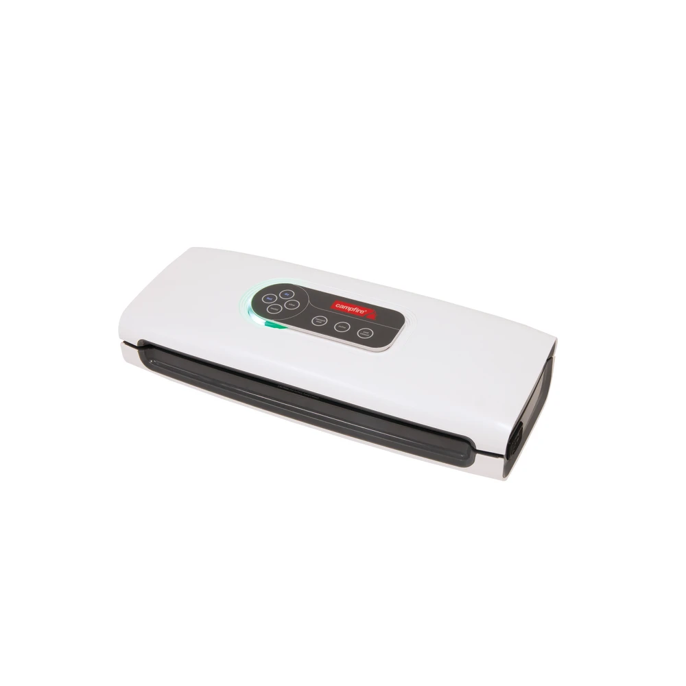 12v/240v Vacuum Sealer w/ Bags Keep food fresher for longer with the Campfire Vacuum Sealer. With a combination of both 12V and 240V power options, you can easily seal in the freshness before you hit the road or while you’re out on your next adventure. Choose the best way to preserve your food with the multi-function control panel. Features Up to 14L per minute vacuum speed under 240V AC power and up to 8L per minute under 12V DC power – Use at home or when your travelling 30cm wide and 3mm thick seal – Lock in freshness, including a seal-only function Multi-function control panel – Allows you to select the right mode for the type of food dry or moist Control the vacuum speed on the control panel – high or low Pulse function – To adapt the vacuum time and speed 5 large bags and 5 medium bags included – Everything you need to get started Bag cutter and canister hose included Specifications Includes: 1x Vacuum Sealer, 1x 12v 1.5m Cable, 5x Large Sealer Bags, 5x Medium Sealer Bags, 1x Bag Cutter, 1x Canister Hose Dimensions: 375mm (L) x 155mm (W) x 80mm (H) Weight: 1.4kg Power: 110W Vacuum degree: 60~80Kpa Vacuum speed: 12~14L/min under 240V AC, 7-8L/min under 12V DC Plug Output: 12v Adaptor or 240v Mains (10000494)