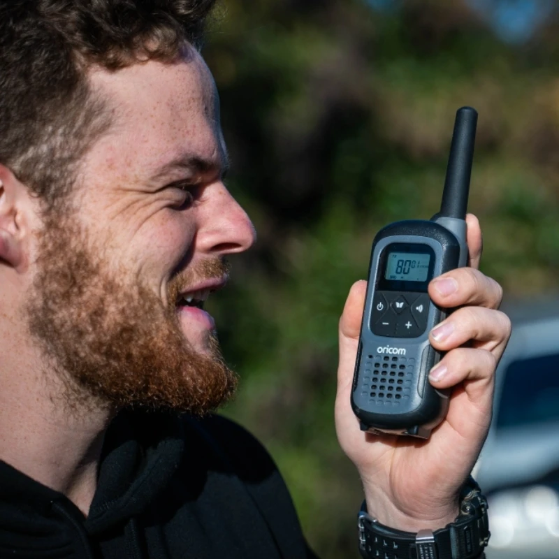 Oricom UHF2500 2 watt Waterproof Handheld UHF CB Radio Single Pack Rated waterproof to IPX7 and including a float and flash feature, this handheld radio is perfect for everyday use, wherever you might find yourself on the land, or by the water. The UHF2500 is light and portable and gives you the peace of mind that should it be dropped in the water or mud, the radio will remain functional for ongoing and long-lasting use. Features 3 Year Warranty (Excludes batteries) 2-watt transmit power Waterproof rating IPX7 – Can be submerged up to 1 meter in water for 30 minutes 80 Channels Floats & flashes when dropped in water Backlit display Monitor feature Channel busy indicator Channel scan Automatic squelch control 38 CTCSS and 83 DCS subcodes to eliminate unwanted signals Duplex (range extender) Keypad lock VOX capable CTCSS and DCS scan function Dual watch Last channel memory Roger beep Micro USB jack for charging 2.5mm jack for optional accessories Specifications: Includes: 2 x UHF CB Radio, 1 x Twin charging pod, 1 x AC adaptor, 1 x USB Y cable for charging, 6 x Rechargeable batteries, 2 x Belt clips, 2 x Oricom Carabiners Range: Up to 10km (Please Note: Range can vary due to topographical and atmospheric conditions) Click Here for Spec Sheet Click Here for Manual (UHF2500-2GR)