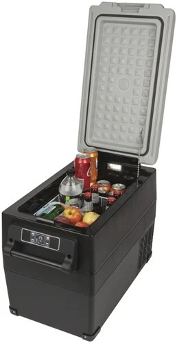 45L Rovin Portable Fridge with Bluetooth • Digital Control Panel • Bluetooth • Both 12/24V & 240V mains power supplies included Boasting 45 litres of internal cooler space, this portable compressor refrigerator can provide temperatures down to -20°C. Supplied with both AC and DC power leads you can use it at home or while traveling. Pair its built-in Bluetooth with your smartphone and have complete control of your temperature while it’s in your boot. Other features include digital temperature controls, a reliable compressor, and a sturdy hard plastic shell that will keep it in shape even on the bumpiest of rides. It comes with a 2-year warranty for peace of mind. Features: • 45L capacity • -20°C to + 20°C • Dual Zone Fridge / Freezer • Removeable internal Basket • Heavy Duty Handles (for tying down on fridge slides etc) • Internal LED light • High efficiency: Max or Eco settings • Power Consumption: 0.25kw.h/24hr • Smartphone app control via it’s built-in Bluetooth • 12/24VDC power adaptor included • 240V mains adaptor included • 3-Stage Low Battery Cutout • 2 Year Warranty Specifications: Power Consumption : 45.0W (up to 3.8amps @ 12 volt) Dimensions: 69cm x 35cm x 48cm Weight (net): 13.7kg Refrigerant: R134a Internal Fuse: 15amp Built-In Bluetooth. Requires Rovin Fridge app from iTunes App store (Apple Devices) or Google Store (Android Devices) What’s in the Box: 1x 45 Litre Portable Compressor Fridge / Freezer 1x Internal (removable) Basket 1x DC Power Cord 1x AC Mains to DC Power Cord 1x Instruction Manual Please note due to it’s size freight charges apply at the checkout. (GH2230)