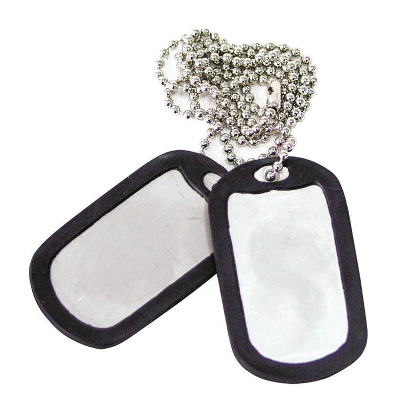 Army Dog Tag Set This Set comes with two plain dog tags ready to be engraved with details. Lightweight and includes two rubber silencers to remain silent, discreet and avoid detection. Weighing in at 19grams you won’t even notice them around your neck. Features Includes Rubber Silencer & Chain Sleek Silver Lightweight Specifications Weight: 19grams Size: 5cm x 2.7cm x 1mm Includes: 2x Silver Dog Tags, 2x Rubber Silencer, 1x Chain (DT001)
