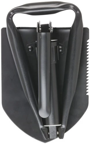 Army Shovel Folding Entrenching Tool with Pick This Army Shovel is made from durable steel, it easily tackles a variety of outdoor tasks: digging trenches, latrines and holes, levelling a site, removing rocks, clearing campfire pits or shifting hot coals. It’s just 24cm long for storage but quickly unfolds to 62cm making it ideal for hiking in remote areas. The serrated edge of the blade also assists with small cutting jobs such as small roots or stripping bark. Weighing just over 1kg, it’s light to carry and suitable for most of the family to use. Conveniently packs away in the included carry case. Features Use as a shovel, saw or pick Durable steel construction Storage bag included Specifications Dimensions: 62cm full length, 24cm folded Head Dimensions:210(L) x 160(W)mm Pick Length: 15cm long Weight: 1.04kg (RSC374)