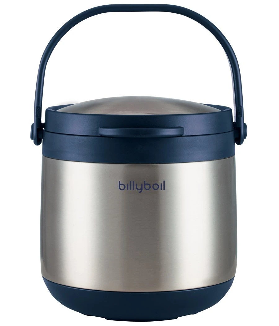 Billy Boil 4.5L – Vacuum Insulated, Stainless Steel Thermal Cooker The Billyboil Thermal Cooker cooks your food using retained heat, for up to 12 hours. It uses no energy after the initial heat-up phase on your existing stovetop. This means you can save up to 80% of your cooking energy usage! The Billyboil has two main parts, which you can see in the graphic below: A stainless steel inner pot to use on your stove, and A vacuum-insulated outer pot with a carry handle. The Billyboil insulated thermal cooker components. This thermal cooker has an internal capacity of about 4.5 litres. It suits cooking for four or more people. You can also use it for cooking in larger batches to make some extra meals for later. It’s Like a Slow Cooker – Only Better Slow cookers are great because they: Lessen the chance of food burning or boiling-over, Allow for better infusion of flavours, Can save time with ‘one-pot’ style cooking. BUT regular slow cookers still need a continuous supply of energy, just like traditional stovetop cooking. If you enjoy the benefits of a slow cooker but want an energy-efficient yet straightforward cooking solution, then the Billyboil is for you. Here’s how easy it is to use: Step 1 – Use the stainless steel inner pot as you would normally. Bring your food to the boil, or cook as required. Step 2 – Once the food is heated through, switch off your stove. Then, place the inner pot inside the insulated outer pot and close the lid. The Billyboil will continue to cook the food using the retained thermal energy in the already heated-up food. Step 3 – Remove the inner pot when the cooking time has elapsed, or up to 12 hours later, when you’re ready to eat. The Billyboil is easy to use on any existing stovetop. Billyboil Thermal Cooker Benefits The thermal cooker concept was developed for those travelling in caravans, motor-homes or when camping. However, thermal cooking is an ideal solution for everyday cooking in the home. Here’s why: Time-Saving. No boiling-over and no burning of food possible. Let your food keep cooking safely and unattended while you get on with something else. Energy Saving. Zero energy consumption after the initial heat-up phase on your regular stove. High Performance. It keeps food cooking above 60˚C for up to 12 hours. This is 50% longer than other thermal cookers on the market. Versatile. Use it to cook vegetables, curries, stews, or just about anything. Compatible. Suitable to use in conjunction with any stovetop (gas, electric, induction or even camp stoves). Safe. The lid can be locked closed with the handle for safe travelling. This also minimises any spillage if the Billyboil is accidentally knocked over. Removable Lid. The lid can be clipped off to keep your food piping hot at the table whilst serving. With the cover off, you can even use the Billyboil as an insulated ice bucket for super-chilled drinks. How the Billyboil thermal cooker saves energy compared to other cooking methods. Specifications – Billyboil Thermal Cooker 4.5L Power Consumption Nil Components Double-wall vacuum Insulated ‘outer pot’ with carry handle, stainless steel ‘inner pot’ with handle and removable silicone handle cover. Capacity 4.5 litres (inner pot). Compatibility Works with electric, gas, induction, and camp stoves. Dimensions Outer pot = 25cm high by 25cm wide Inner pot = 17.5cm high by 20cm wide Weight 3.1kg Carton Quantity 4 – this listing is for 1 unit Materials Stainless steel type 304 inner and outer pot. Outer pot has a plastic (polypropylene) handle and framing. Product Identifiers Billy Boil 4.5L Thermal Cooker, 9398348333487 (Barcode) Further Documentation Instructions (Included) Warranty 2 Years Frequently Asked Questions What recipes do you suggest? Any recipe designed for extended simmering, slow cooking, or one-pot cooking is ideal for the Billyboil. In other words, you probably already have a stack of suitable recipes. Is it compatible with electric induction stovetops? Yes. It has a thick base which is appropriate for induction stovetops. It is of course also suitable for regular electric and gas stoves as well. It even works on camp stoves, alcohol stoves, etc. How should I clean the Billyboil? You can clean the Billyboil like any stainless steel cookware. Use warm soapy water to clean the inner pot. For stubborn marks, use a stainless steel cleaner or a cleaning paste, like Gumption. Avoid using steel wool or abrasives as they may scratch the stainless steel. To clean the outer pot, use a damp cloth – don’t submerge it in water. (9398348333487)