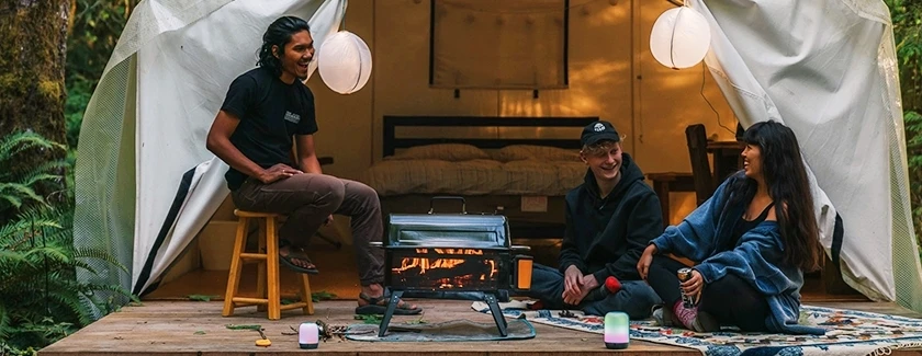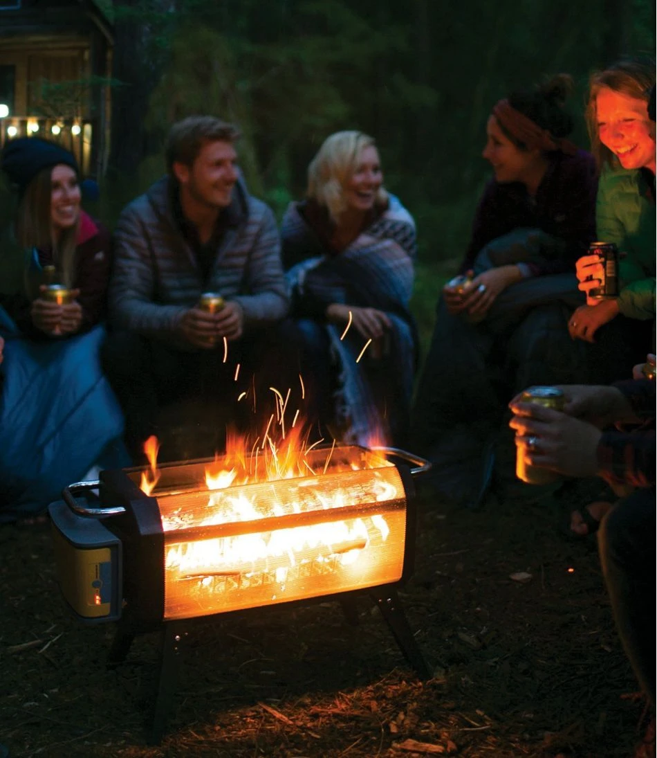 BioLite FirePit+ (Gen2) Enjoy the warmth, smell, crackle, and feel of a wood campfire, without any of the smoke. With capacity for up to 4 standard firewood logs, the 2nd Gen BioLite FirePit creates hyper-efficient flames with patented airflow technology and gives you a front-row seat to the magic thanks to the X-Ray mesh body, enabling 360 views. Lift the fuel rack and toss in charcoal to transform the FirePit into a hibachi style grill, complete with an included grill grate. Control the size of your flames manually or remotely with the free Bluetooth app. Upgraded body design radiates heat outward Upgraded high-temp enamel coating for durability and easy cleaning Upgraded 12,800 mAh battery for longer burntimes Burn time: 30hr on LOW, 14hr on MED, 7hr on HI Dimensions: 27″ x 13″ x 15.8″ Weight: 19.8 lbs Includes: FirePit Rain Cover Grill Grate Fuel Rack USB A to Micro USB Charging Cord Features: USB Rechargeable Powerpack: The new upgraded 12,800 mAh pack can power your fire for up to 24 hours. Detach and recharge via USB or use Solar Carry Cover to trickle charge when not in use (sold separately) Air Jets Improve Combustion: 51 airjets inject the fire with oxygen along key locations. This creates a more uniform temperature and mixing of gases inside the fire which dramatically improves combustion. Folding Legs: Makes portability a snap. Combined with the Solar Carry Cover (sold separately), you’re ready to go from the backyard to the beach in no time. Grill Grate: Cook hibachi-style meals using the removeable grill grate. Fuel rack adjusts to accommodate two types of fuel – wood or charcoal. X-Ray Mesh: The 360° viewing lets you see it all: glowing embers at the bottom, the gasifying wood in the middle, and the flames coming out at the top. Bluetooth Integration: You can control that fan intensity right from the FirePit’s powerpack Specifications: Burn Time: Fan Low: 24 Hours Fan Medium: 10 Hours Fan High: 5 Hours Fuel: Firewood or Charcoal Power Input: Micro USB Power Output: USB A Free Bluetooth App (available in App Store): Compatible with iOS 10.0+ & Android 5+ (FPA0201)