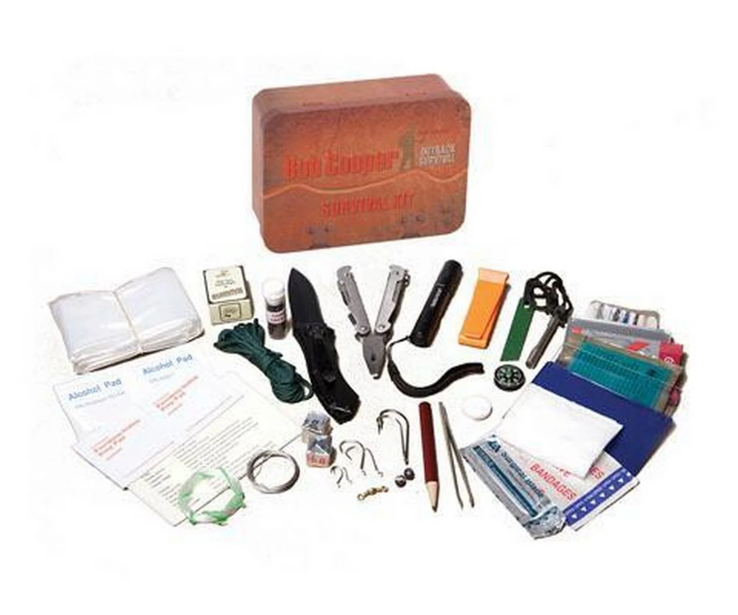 Developed by outback survival expert Bob Cooper, the Survival Kit contains all the necessary items for survival in the wilderness. Designed and tested in the outback, the kit’s quality components have been selected specifically to be the most versatile and effective system of survival. Bob Cooper has identified the ‘Big 5’ priorities of survival to be water, warmth, shelter, signals and food. Using this practical kit, in conjunction with the included instruction and survival tip sheet, you can survive in the Australian outback until you walk out or assistance arrives. This is a detailed kit including a torch, compass, knife, multi-tool + many more quality items. Packed in a compact tin small enough to fit into a large pocket and weighing only 434 grams, it is durable and lightweight. Already used by the Australian Defence Force, pilots, government agencies, and mining companies, this kit is ideal to take with you while camping, hiking and fishing, as well as for keeping in your vehicle while you are on the road. Bob Cooper’s bushcraft skills have been developed through more than 25 years of experience testing and teaching the art of survival. The outback of Australia is one of the most unforgiving regions of the world. Make sure you are prepared when venturing into the bush. “Survival situations cannot be planned and they are not usually wished fo, but they should be expected and prepared for. That is why I design, carry and believe in survival kits” – Bob Cooper. Includes: Durable Tin Storage Container Compass Magnifying Lense Hacksaw blade Flint Fire Starter Loud Whistle Folding Pocket knife Large Water Procurement Plastic Bags Survival Mirror Mini survival tip playing cards Fishing Hooks Fishing Line Brass Swivel Sinkers Trace Wire Cord LED Torch Antiseptic Wipes Alcohol Swabs Plasters (Band-Aids) Tweezers Cotton Pad Scalpal blade Multi-tool Pencil Coffee Stock Cubes Tea Bag Glucose Tablet Condy’s Crystals Water Purification Tablets Instruction Sheet/Manual Specifications: Dimensions: 130 x 95 x 43mm Weight: 475 grams (BOBSURV)