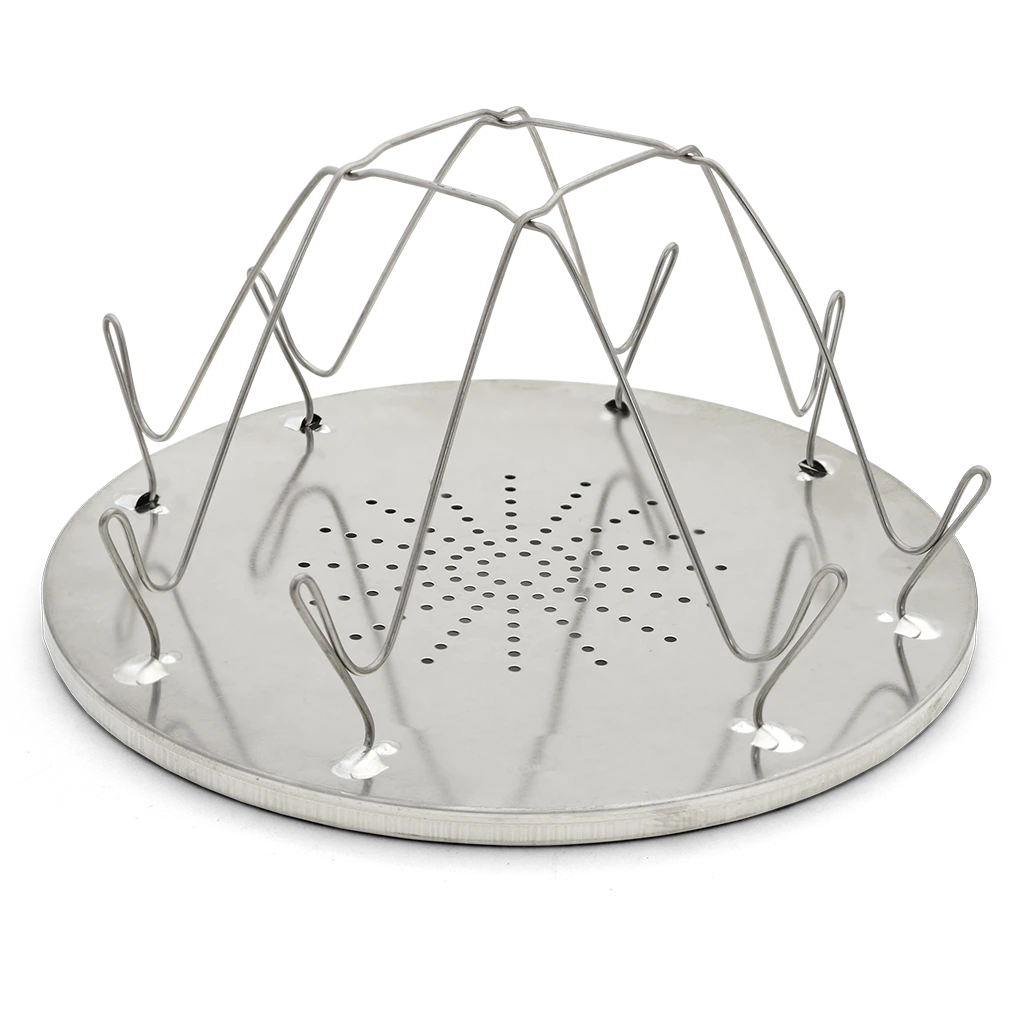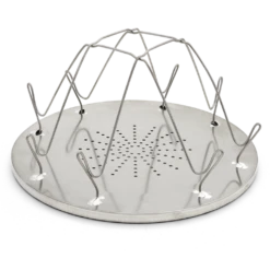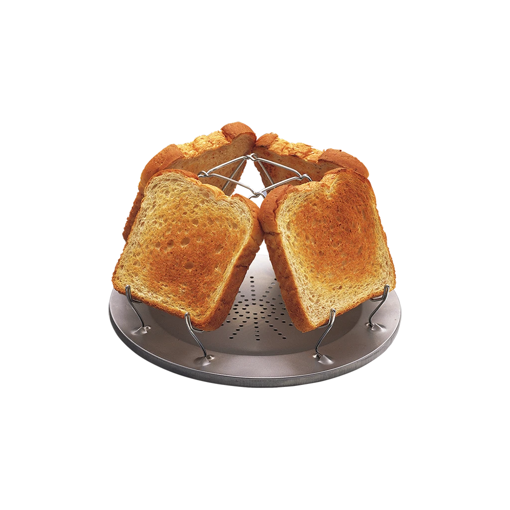 Camp Stove Toaster The Camp Stove Toaster is an easy and convenient way to make toast on your camping stove. The toaster holds up to 4 slices of toast simultaneously to make the perfect camp breakfast. Made of a lightweight steel plate base with durable steel coated wires that are rust-resistant and fold flat for easy storage. The steel plate has a diameter of 23cm and is designed to fit on the main burner of most gas stoves. Not only that, it can be used on emergency stoves such as the Firebox Scout (Sold Separately). Ideal for camping, RVing, at the cabin, or even in the backyard! Features Cooks up to 4 slides of toast on a gas stove. Great for use when car camping, in the RV, or at the cabin Made of a lightweight steel base with steel-coated wires Folds down flat for easy storage and transportation Specifications Diameter: 23 cm Weight: 220g (504)