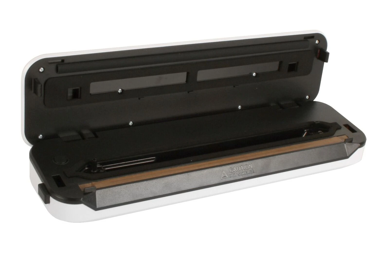 Wildtrak Vacuum Food Sealer Features a powerful 60kPa vacuum pump that gives an airtight sealing. This vacuum sealer keeps food fresh in the freezer up to 5x longer and the fridge 2x longer compares to other ordinary storage methods. With a built-in cutter, it enables you to adjust to suit various-sized rolls and cut the vacuum sealer bags in the desired size to prevent bag-wasting. Features Two sealing settings Silicone contact bar Built-in bag/roll cutter Specifications Includes: 1x User Manual, 1x Vacuum Food Sealer, 1x AC Power Cord Rated Voltage:220-240VAC Rated Power: 110W Vacuum Level: >60kPa Size: 38 x 10 x 6.2cm (CA7201)