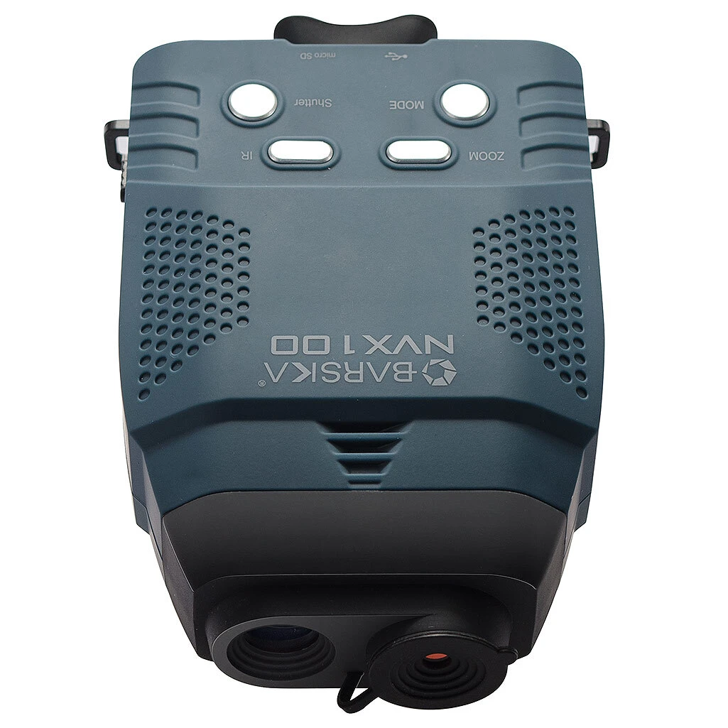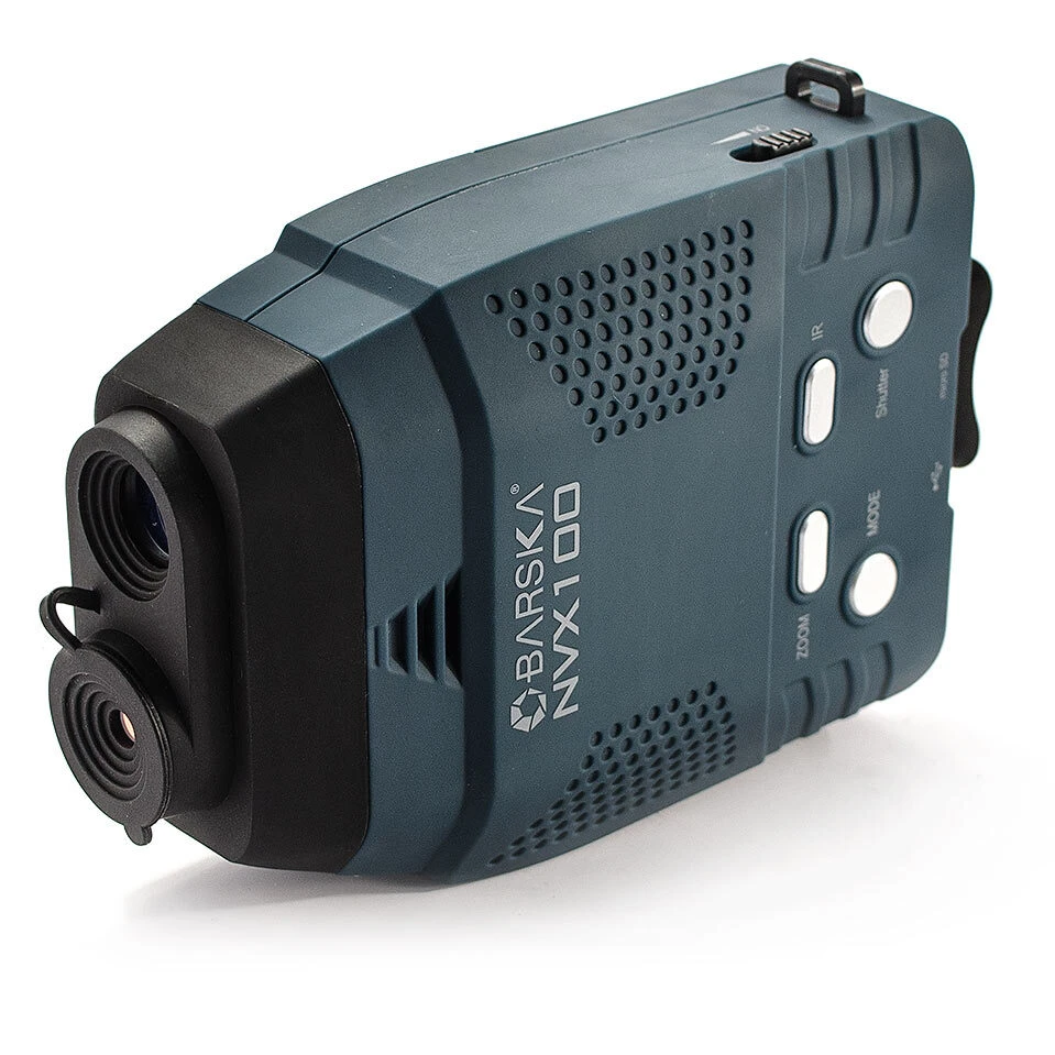 Barska Digital Night Vision Monocular with Record Function and Infrared Illuminator Compared to older style night vision scopes with image intensifiers, this night vision monocular uses a digital CMOS sensor for a much more durable scope and a clearer image that doesn’t suffer from light exposure. Clearly see with up to 3x magnification in the dark with a multi-mode infrared illuminator which allows you to see in complete darkness for up to 328ft/100m. It’s ideal for a wide variety of night time uses such as surveillance, security, hunting, wildlife observation and general night time use where better image clarity than is required when compared to thermal scopes. This scope includes an 4gb SD card which allows you to take photos and video of what you’re viewing. You can also plug it into a TV for group viewing. Easy to use and supplied with a simple instruction manual you’ll be amazed by what you can see in the dark. Features: Clearly see up to 3x magnification in the dark Better image clarity & detail than thermal scopes (in certain terrains) Day or Night Viewing Infrared illuminator allows viewing in the dark up to 328ft/100m and can be turned on or off Records images and video Large menu buttons Built-in tripod mount Display images and videos on the television Easily transfer files to a computer Requires easy to source 4xAA batteries (not included) Includes 4GB micro SD card, mini USB cable, AV cable, neckstrap and soft carrying case Specifications: Magnification: 3x Digital Zoom: 2x Close Focus (ft/m): 1m / 3.2ft Objective Lens: 14.5mm Exit Pupil: 20mm Field of View (ft@1000yds/m@1000m): 328ft /100m Angle of View: 14° Lighting System: Luminance 3W Infrared LED Lighting System: IR Wavelength 850nm Imager Sensor: CMOS Imager Size: 1/5 in Imager Resolution: 640 x 480 Screen Size: 35 in at 2M Screen Resolution: 320 x 240 Video Recording Format: H.264 AV Support: NTSC/PAL Output: USB (cable included) Storage Slot: Micro-SD Card Battery Life: up to 5 hours (depending on infrared brightness setting) Battery Life 2-5 hours Batteries required: 4xAA (not included) Product Weight: 247g (8.71 oz) Includes: 1x Digital Night Vision Monocular Scope with lense cap Mini USB Cable AV Cable Neck Strap Soft Carrying Case 12 Month Australian Warranty (BQ12388)