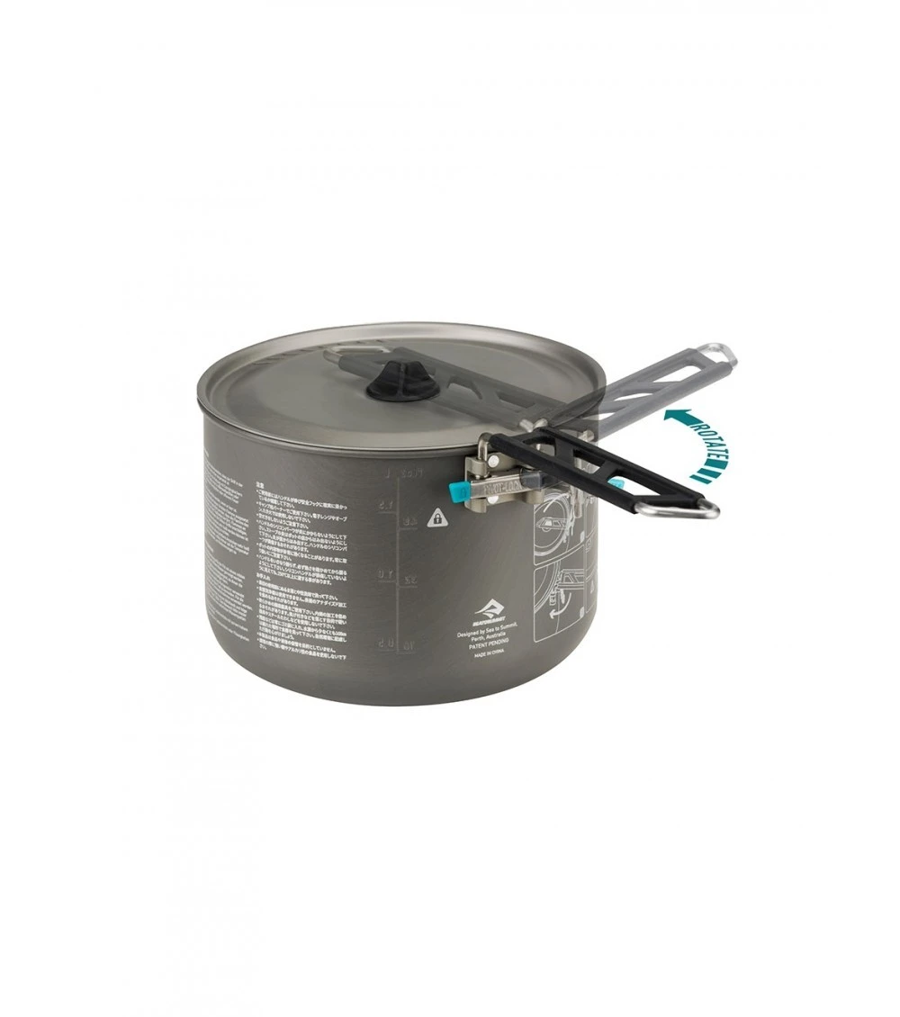 The AlphaPot’s unique patent-pending PIVOT-LOCK™ handle rotates horizontally, locking in place for a secure and ergonomic grip when in use and folds away keeping the lid locked to the pot for low-profile storage. The hard-anodized surface provides a durable, abrasion resistant and easy to clean cooking surface, while the straining lid has a unique hold pattern to facilitate easy drainage. Designed to be functional for solo to group use, the compact nesting Alpha Pots are compatible with Seat To Summit’s Alpha Pans and new Delta Light range of camp dinnerware. Features: Patent-pending PIVOT-LOCK™ provides a secure and easy to operate handle, and folds away for easy packing when not in use Lightweight, hard-anodised alloy is strong, scratch resistant and durable Easy flow strainer lid for efficient draining Integrated patent-pending LID KEEP™ lid holder hooks lid to pot rim A graded scale on the internal surface of the pot allows easy measurement of volume A textured base improves the stability of the pot on camping stoves A large internal radius allows easy cleaning and matches Delta cutlery for scraping and stirring Handle Locks Lid to pot for packing Specifications: 2.7L Alpha Pot Weight: 282g, In-Use Size: 120mm x 182mm Pot: 100% Hard Anodized Lightweight Aluminium Alloy Handle: Stainless Steel With Silicone Grip Lid: 100% Hard Anodized Lightweight Aluminium Alloy Lid Keep: 100% Silicone Bracket: 100% Hard Anodized Aluminium Alloy Other Components: Stainless Steel And Silicone (APOTA1.2L)