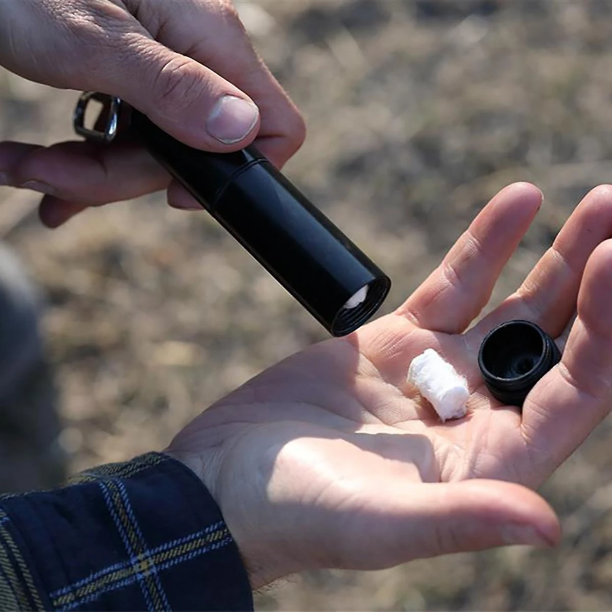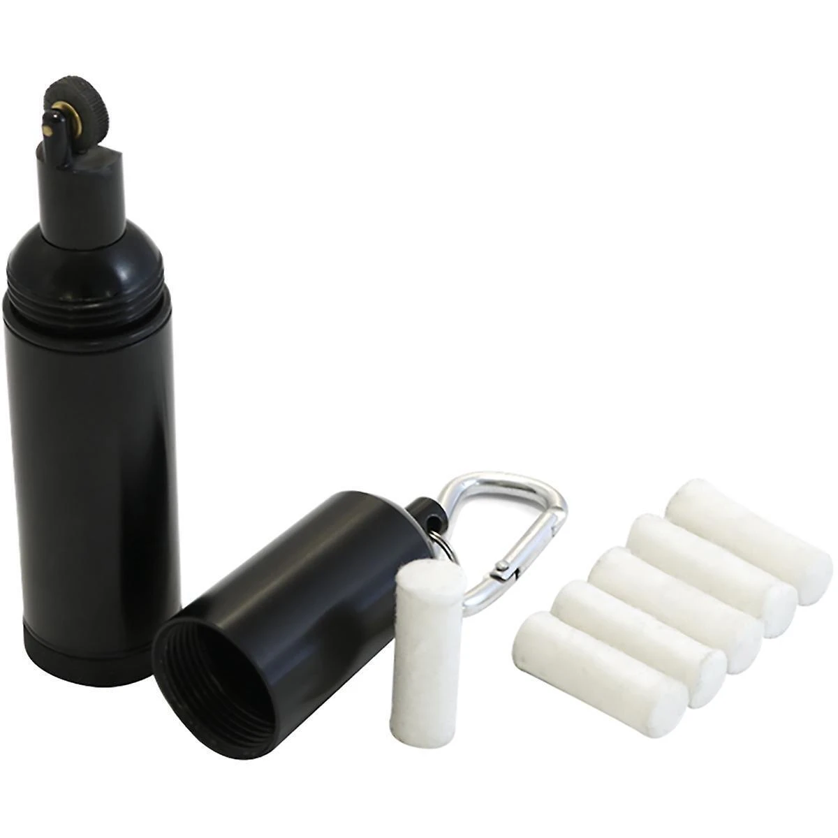 Flint Wheel Fire Starting Kit All you need to create a fire in a compact, tough, and handy aluminium watertight capsule. The capsule separates to access the Flint Wheel, then remove the bottom cap for access to the storage compartment with the tinder firestarters inside. Includes two spare flints and six tinder firestarters made from cotton and paraffin wax. Attach to the outside of your Bergen Pack with the included carabiner clip. Features Complete Firestarting Kit – 3 Flint Wheels (1 Installed, 2 Spare), 6 Tinder Firestarters, Watertight Capsule Case with Carabiner Clip Watertight Capsule Case – Ideal for Water Sports adventures Carabiner Clip – Conveniently attach to your Bergen for easy access when you need it Durable Aluminium Case Refillable Specifications Weight: 90grams (2226)