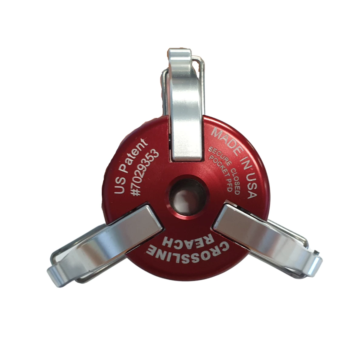Collapsible Crossline Reach Rope Capture Device The Reach rope capture device designed by Dr. Mike Croslin has added an additional element of safety for flood / swiftwater rescue personnel and whitewater professionals. The REACH system allows rescuers to capture another rescue line without having to make personal contact with that line and/or enter the water. Examples of where it provides significant benefits are: To assist in establishing a rope system across a river or channel which is wider than length of rope in standard throwbag. Situations include tension diagonals, highlines, stabilisation lines and tag line systems. To change the direction of pull on an existing line (vector pull). Situations include lateral pull of a line to bring a rescuer, casualty or inflatable working platform out of the downstream current and into an eddy. Features: Made in USA Made from 7075 Aircraft Grade Aluminium & Stainless Steel Sprung Gates – Maximum Strength & Lightweight Assembly Ideal for Hiking, Water Sports, Boating or Emergency Rescue Specifications: Dimensions: 10cm x 10cm x 10cm Colour: Red & Silver (CRD)