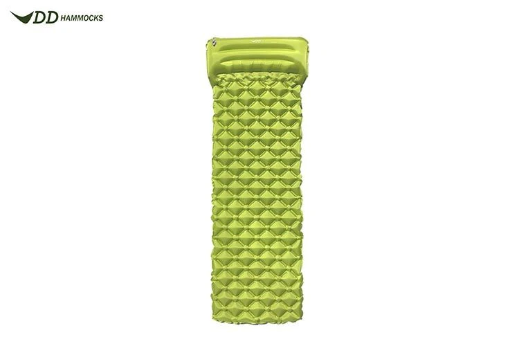 DD SuperLight Inflatable Mat with Pillow Compact, incredibly light, and comfortable. The DD SuperLight Inflatable Mat is the perfect way to stay comfortable whilst keeping your pack weight incredibly light and small. Packing down to around the same size as a 500ml water bottle and weighing in at less than 500g, this is the product for you if you are looking to head off for a multi-day adventure or want to move fast between campsites. Perfect for ultralight Hikers, backpackers, bushcrafters and expeditionists. Features Inflates and deflates quickly and easily: just blow air into the valve to inflate, and release the valve to deflate. The mat packs away easily into its’ own stuff sack with a carry handle for portability. Very compact – Packs down to a cylinder measuring approximately 19cm (L) x 6cm (diameter) Quick and easy inflation by blowing into the valve Built-in pillow for comfort Stuff sack for easy storage, with a carry handle Elastic strap included for storage within the stuff-sack Weighs only 490g Inflated Size: 180cm (L) x 60cm (W) x 5cm (H) Specifications Size: 180cm x 60cm x 5cm (Inflated) Colour: Green Weight: 490g Includes: DD SuperLight Inflatable Mat, Elastic Strap, Stuff Sack (DDSuperLightInflatableMat)