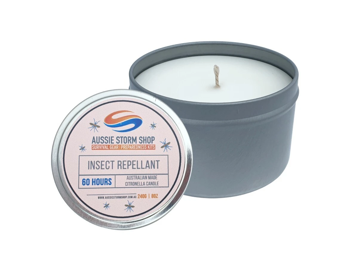 Aussie Storm Shop Emergency + Storm 60 Hour Long Burn Citronella Survival Candle Introducing our new Australian Made 60 hour Long-Lasting Citronella Survival Candle. It is essential in any Emergency Prepping Kit. These Candles are Australian Made from Soy wax which means it is healthier for us and the environment. Features infused Citronella to keep those pesky bugs away. Perfect for using outside whether you are camping or relaxing on your patio. Don’t be left stranded this Storm Season with the Aussie Storm Shop Emergency + Storm 60 Hour Long Burn Survival Candle. Features: Last 60 Hours Australian Made! Emergency Lighting for Survival Situations Insect Repellant – Infused Citronella Specifications Weight: 240grams Run Time: 60 Hours Dimensions: Diameter – 8cm, Width – 5cm Made in Australia (60HrCandle_Citronella)