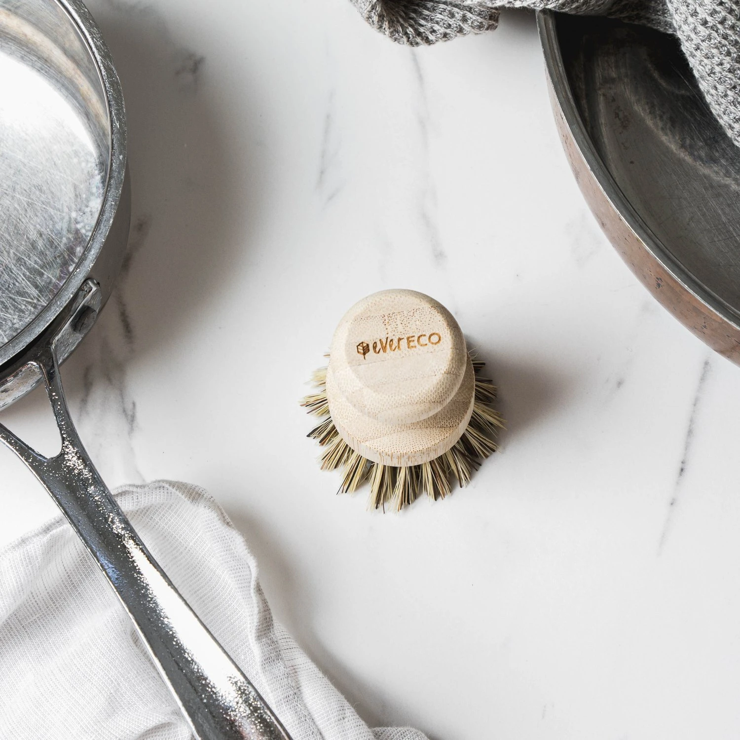Ever Eco Pot Scrubber Bamboo Handle & Palm Leaf Bristles