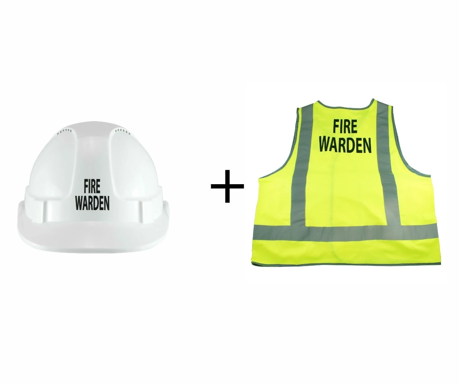 Fire Warden Hard Hat & Yellow Hi-Vis Vest Combo Pack