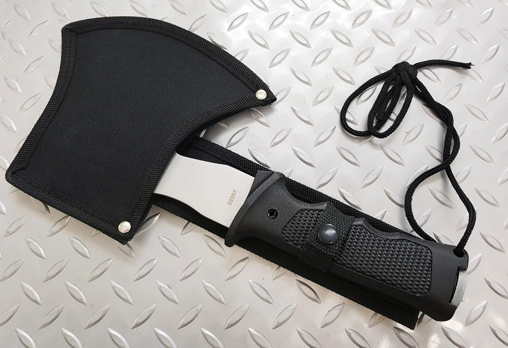 Fury Recon Heavy Duty Survival Axe Kit The Fury Recon Survival Axe is essential for adventurers. This axe will help you out of the toughest situations with its hidden Survival Kit. Features: 4.5mm Steel Blade 135mm Long Zinc Aluminum Handle with Finger Grooves and Nylon Lanyard Handle Stores in Built Survival Kit 273mm Overall Length Include Nylon Sheath with Belt Loop & Clip Closure Specifications: Includes: Fury Recon Survival Axe, Black Tactical Nylon Sheath with Belt Loop and Clip Closure, 4 x Matches, 1 x Bandaid, 1 x Fishing Hook, 1 x Fishing Line, 1 x Compass Dimensions: 28xm x 14cm (Head), 4cm (Handle) x 2cm (Handle) (22007)