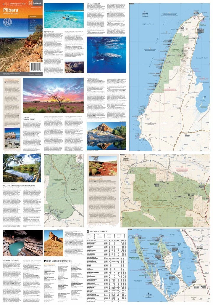 Pilbara & Coral Coast Map (9th Edition) This regional waterproof map of the Pilbara and Coral Coast is ideal for discovering the northern reaches of Western Australia. The main map covers the diverse marine attractions around Shark Bay, François Peron National Park and the Ningaloo Reef. It also stretches to the gorges of Karijini, lush habitats of Millstream Chichester National Park and the magnificent Marble Bar. It also features additional information relating to permits, useful contacts and historical context surrounding some of the area’s most popular tourist destinations. Key Features GPS surveyed roads and tracks Fuel stops 4WD tracks Camping areas Historic sites Detailed inset maps Key Specifications Edition: 9th Scale: 1:1,200,000 Folded size (WxHxD): 140mm x 250mm x 2mm Flat size (WxH): 700mm x 1000mm (9781925625752)