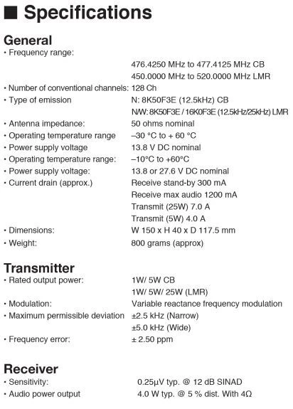 Icom IC-410PRO 80ch UHF 5w CB Mobile Radio The Icom IC-410PRO UHF CB is a Mil-Spec, tried and proven CB radio that comes pre-programmed with 80 UHF CB Channels + 48 user programmable receive channels. It is compact and designed for the most extreme Australian conditions. It features die-cast aluminium chassis and a heavy- duty heat sink that gives you the added benefits of a rugged and sturdy construction. The included microphone is a noise cancelling mic which allows clear communication by reducing the surrounding noise, especially the low frequency noise received by the microphone. The IC-410PRO is also compatible and fully approved for use on Licensed Land Mobile services. (ACMA licensed users only). Features: Easy to see backlit LCD display 5 year warranty on radio Exclusive automatic repeater scan easily finds local repeaters Rugged MIL SPEC construction provides shock & vibration resistance Output power 5 Watts (25W with licensed commercial frequencies) Silent Stand-by with CTCSS & Selcall Heavy Duty Noise Cancelling Microphone Front mounted speaker for clear sound Made in Japan Includes: 1x IC-410Pro 80 ch UHF CB 1x HM211 Noise Cancelling Mic 1x DC Power Cable 1x Mounting Bracket 1x Mic hanging kit 1x User Manual Click Here to view Specifications Click Here to view User Manual (IC-410PRO)