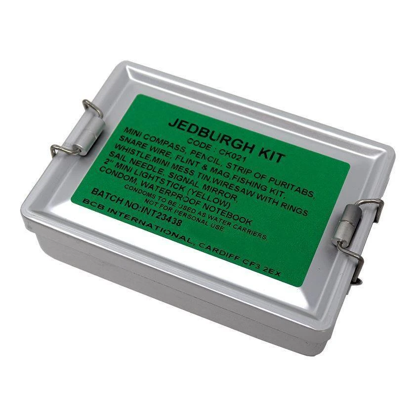 The JEDBURGH PATHFINDER KIT is a survival tin that doubles as a mess tin and includes a detailed survival kit. It gets its name from the Code name for teams of three parachuted into Occupied Europe (primarily France, but also Holland and Belgium) beginning on D-Day (June 6, 1944) to aid local Resistance groups. The men consisted of a British or American officer, a native of the country, and a non-commissioned radio operator. The Jedburgh Pathfinder Mess Tin Contains: • Mini Map Compass In Mils • Water Purification Tablets 1 X Strip Of 10 Tablets • Gold Wire Animal Snare 3.5 Metres 12ft • Flint Fire Starter With Striker & Magnesium Block • Survival Fishing Kit (fishing line, with hooks, swivels, sinkers & clips) • Distress Whistle • Commando Wire Bush Saw • Sail Needles No 18 X 2 & 5/8″ • 2″ Mayday Signal Mirror (Heliograph) • Condom Unlubricated – (For use as Water Carrier) • Type C – Mini 2″ Lightstick (Yellow) • Rite In The Rain Waterproof Notebook • Pencil • All pre-packed into a resealable metal Mess Tin Specifications: Mess Tin Dimensions: 14cm x 9.5cm x 3.4cm Mess TIn Weight (with survival kit contents): 280g Made in the UK (CK021)