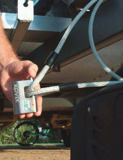 Kovix 12mm Heavy Duty Alarmed Bolt Lock The Kovix KBL-12 Alarmed Bolt Lock features a built-in 120db alarm system that is triggered by movement or tampering. Secure your most valuable possessions with this ultra strong, stainless steel padlock. This lock provides maximum security for your possessions, including sheds, shipping containers, tool boxes and trailers. Can be used in conjunction with Kovix Security Cables to secure loose items like generators, fridges, solar panels, satellite dishes. Features 12mm Locking Pin Hardened Steel Construction Water Resistant – Designed for outdoor use 120dB Alarm Alarm ON or OFF mode Lithium CR2 Battery (included) Specifications Weight: 574 grams approx Includes: 1x Kovix Lock, 4x Keys, 1x Key Number, 1x CR2 Battery (KBL12-Z)