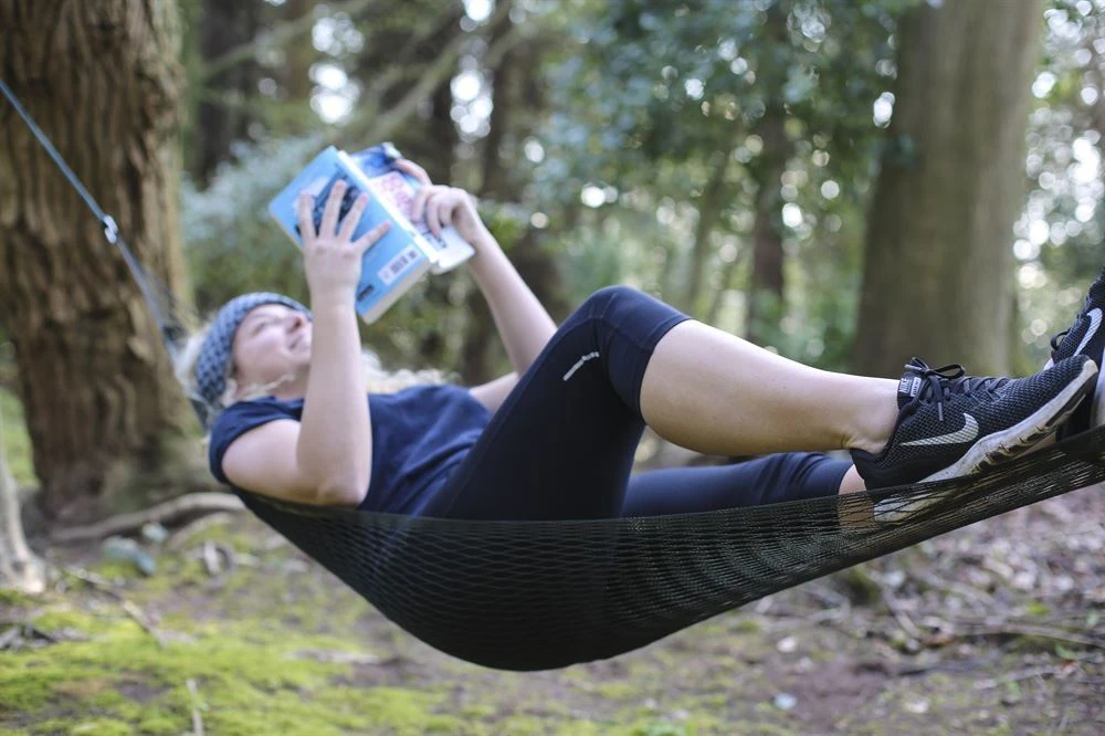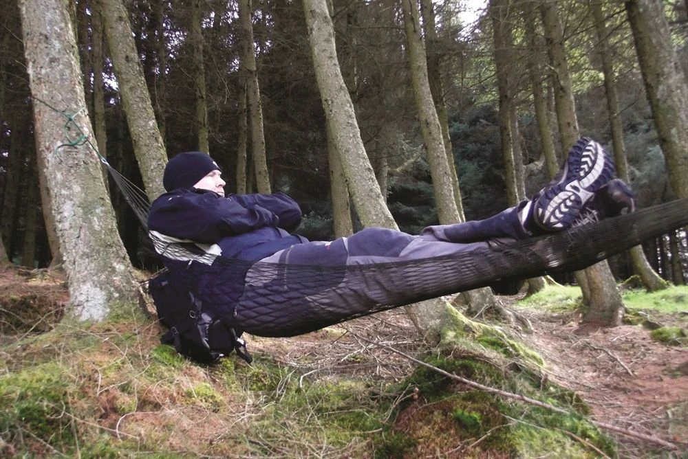 This lightweight and compact yet durable string-net design mini hammock is ideal for use as typical hammock or as gear storage above wet, dirty or uneven ground. Perfect for camping, backpacking and general leisure. Includes metal loops and end ropes. Specifications Colour: OD Green Max weight: 100kg Material: Nylon mesh Dimensions: 213 x 121cm Pack size: 13 x 9.5cm Packed weight: 185g (CT430C)