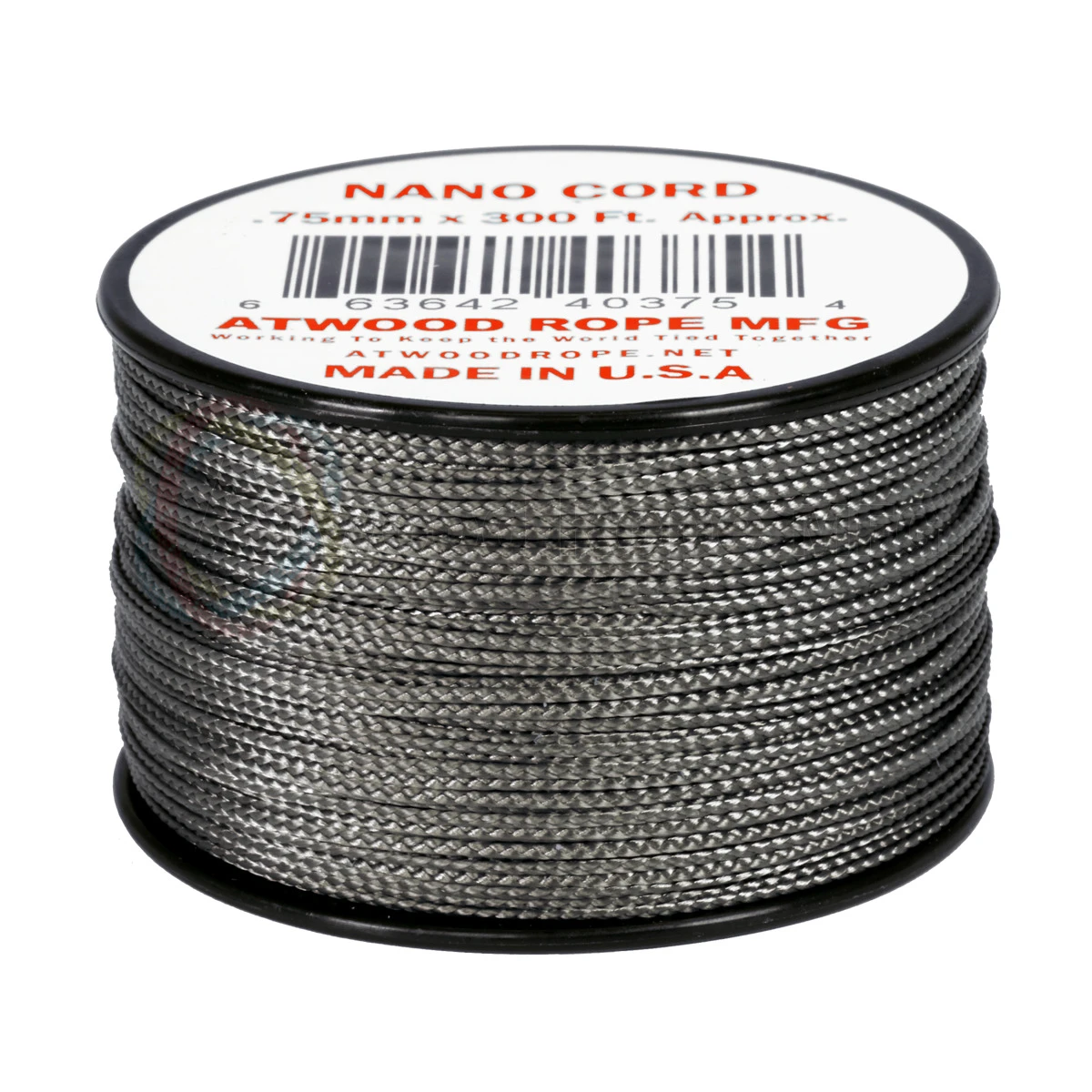 p.p1 {margin: 0.0px 0.0px 0.0px 0.0px; font: 11.0px ‘Helvetica Neue’; color: #000000} span.s1 {font-kerning: none} This rope is even smaller than micro cord and still 36 lbs test, is a very versatile product. This cord is perfect for intricate jewelry makers, crafters, macrame artists etc. Great for bracelets, lanyards, and key chains. Used for fishing line, handle wraps, wind chimes / dream catchers, beading etc. Great for backpacks and emergency kits. This rope comes on a small reusable plastic spool. Specifications: – Colour: Graphite – Spool Length: 91.5 metres / 300ft – Rope Diameter – 1/32″ / .75mm – Tensile Strength – 36 lbs / 17 kg – Weight (oz/300ft approx) – 2.8oz / 80g per 300ft spool – Works in the Micro Cord Dispenser – Material – Polyester / Nylon – Lightweight & Strong – Color Will not run or bleed – UV, Rot, Mildew Resistant – Made In The USA (ARMNanoGraphite)