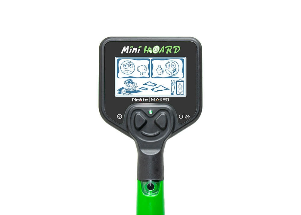Nokta Makro Mini Hoard Complete Metal Detector Kit The mini hoard kids metal detector (Complete Cool Kit) – world’s first waterproof kids detector! Ideal for 4-8 year olds. If you want to get the kids outside and off their devices then we couldn’t think of a better way to do it than to introduce them to the world of metal detecting! One of the only hobbies that can pay for itself even at a beginner level, we believe the Mini Hoard is the ideal machine to get started in the hobby. The Mini Hoard made by Nokta | Makro is the worlds first fully waterproof metal detector designed entirely for kids. Super tough and simple to use yet with the basic and powerful features you need to discriminate and ignore iron targets and other junk metals. Fully collapsible for transport and waterproof for playing in creeks and washing off after a day of detecting the Mini Hoard is an incredible All-Terrain detector made to go anywhere with anyone. The Mini has 2 sections of discrimination meaning you can choose which targets you want to ignore and which targets you want to dig, a must have feature for those places with lots of nails and bottle caps in the ground! Release the discoverer in your child… see the excitement when they uncover their first treasure! Features: IP68 – Fully submersible up to 1 meters (3 ft) Retractable Shaft – Shaft retracts down to 63 cm (25″). Great for easy transport Lightweight (780g) – Easy to use… lightweight and compact! Impressive build quality combined with child-friendly design Specifications: Ideal Age: 4 – 8 yrs. Operating Frequency: 15kHz Audio Tones: 2 Pinpoint: Yes Discrimination: Iron Discrimination LED Indicator: Pinpoint & Discrimination Depth Indicator: 3 Levels Battery Indicator: Yes Auto Shut-off & Alarm: Yes Search Coil: 15 cm (6″) Display: Custom LCD Weight: 780g Length: 63 cm – 90 cm (25” – 35”) Battery: 2 x AA (not included) Warranty: 2 Years What’s in the box? – Mini Hoard Waterproof Metal Detector – Includes 6″ Search Coil – Sand Scoop & Sifter – Camo/Kids Designs Sticker packs to add your own design! – With BONUS Treasure Marx (Set of 4) – Instruction Manual – 2 Years Warranty (11000806)