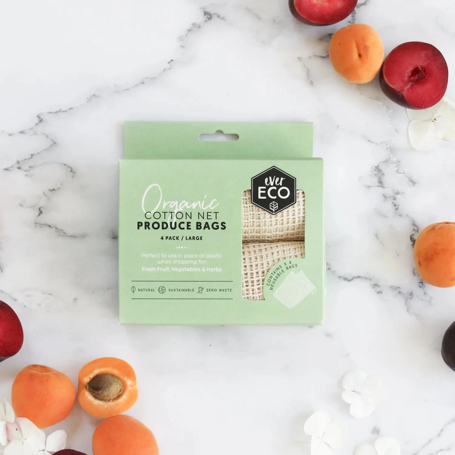 Organic Cotton Net Produce Bags 4 Pack / Large