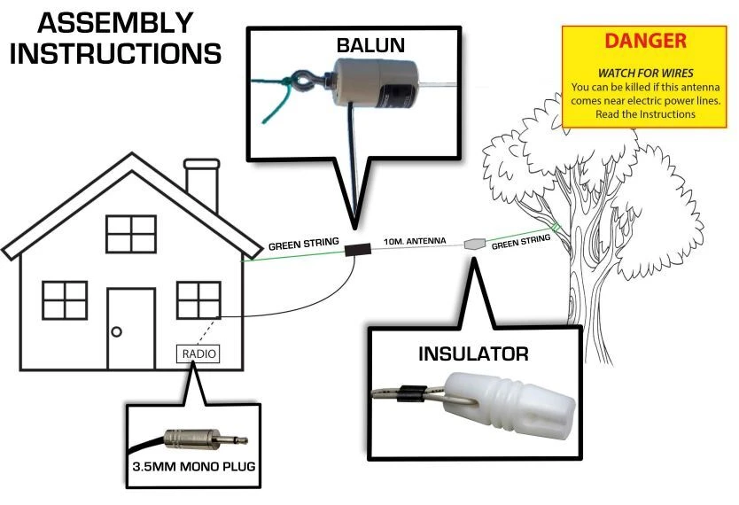 Outdoor Longwire Shortwave & MW Antenna The Outdoor Longwire Shortwave and Medium Wave Antenna significantly enhances reception of signals in the medium wave (MW) and shortwave (SW) bands covering 0.5-30 MHz. This antenna is based on a 10 metre longwire antenna design but provides significantly improved reception over a basic longwire because it utilises a matching transformer that acts as a balun with a ratio of 10:1. This provides an optimal match between the 500 Ω antenna and the 50Ω input of the external antenna input of most shortwave radios greatly increasing the amount of signal provided to the tuner. The antenna’s 7.62 metre coax feeder acts as a counterpoise for the antenna, therefore no connection to ground is necessary. However, the stainless steel eyelet which is connected to the balun is internally grounded, so if reception is noisy this can be grounded to an external earth. The RG-174 coaxial cable is terminated in a mono 3.5mm plug that suits our portable shortwave receivers with 3.5mm antenna input and our desktop shortwave radio with BNC antenna connection. The antenna is omnidirectional and can be used indoors or outdoors and is completely waterproof. Features: Dramatically increases reception of distant and weak shortwave signals No power required – simply plug into your shortwave radio Full fitting kit included (guy ropes, insulator etc) Works with all shortwave radios with a 3.5mm or BNC antenna connection Supplied with PL-259, RCA and BNC adaptors to allow the antenna fit a wide variety of radios and applications Specifications: Antenna Length from Balun to Insulator: 10 metres (allow more length for installation for included guy ropes) Feeder Cable (Antenna to Radio Connection Cable): 7.62 metres. Fitted with 3.5mm Antenna Plug Supplied accessories: Guy ropes, Adaptors x3 (PL-259, BNC, RCA) Radio Band: Shortwave and Medium Wave Frequency Coverage: 0.5-30 MHz (AN-LW)