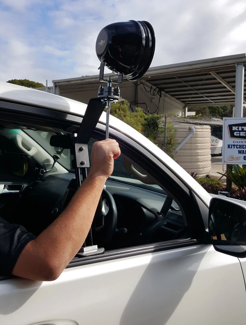 Powa Beam 175mm/7″ QH 100W Spotlight with Bracket *Please note there is a 4-6 week delay. These are Australian made and there is currently and backlog of orders. The Australian Made Powa Beam 7” Spotlight is designed to be used as a searchlight from your vehicle or boat. It connects directly to your battery to ensure you have uninterrupted light all night long. It is the top-selling size and most popular among farmers and recreation shooters & fishers. The Halogen bulb provides better colour rendition and clarity than LED and is less likely to spook or startle wildlife as easily as LED spotlights can. The high-quality highly polished smooth reflector provides long-range distance. Specifications: Reflector Size – 175mm (7″) (Diameter) Casing Size – 195mm (Diameter) x 140mm (Depth) Voltage – 12V Power – 100W Light Type – Quartz Halogen (QH) Beam Type – Adjustable from Spot to Spread Base – Steel Bracket with 9mm Mounting Hole Main Components for Modifications & Repairs: Bulb: 12V 100W Vertical Filament Lens: Toughened Glass Reflector: Heat Resistant Alloy Reflector Case: Anodized Alloy Base: Powder Coated Custom Metal Bracket Package Includes: 1x Australian Made Powa Beam 7” 100W QH Spotlight 3.5m Cable Electrical Connectors Battery Clips Powa Beam Bumper Sticker (PL175WB)