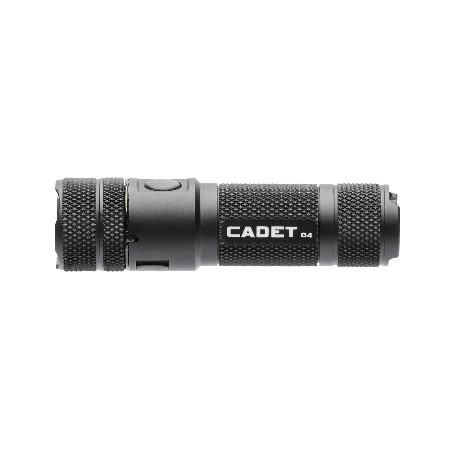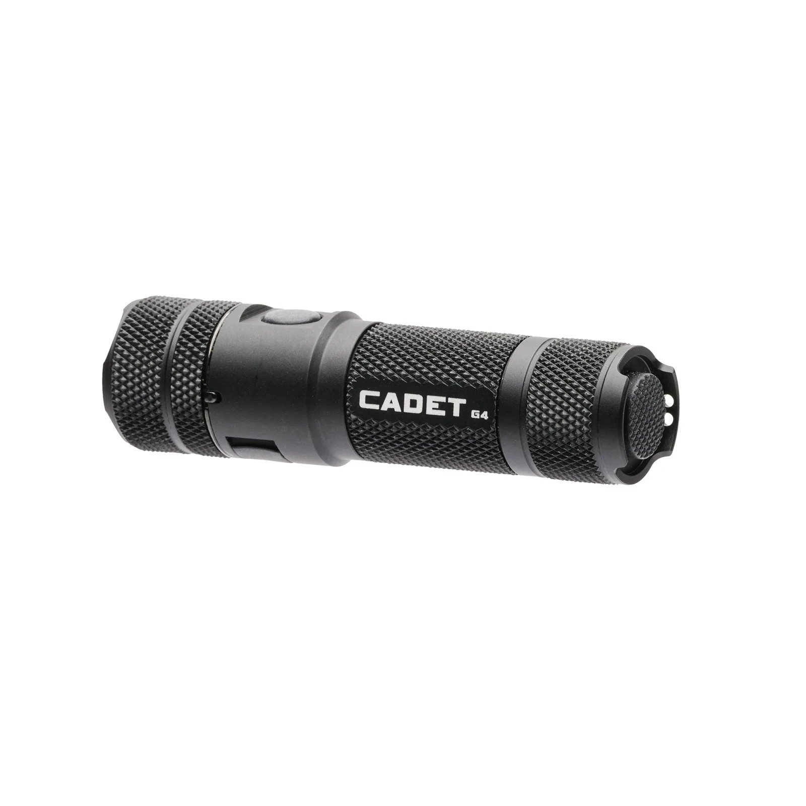 PowerTac Cadet G4 1200 Lumens Rechargeable LED Flashlight The Powertac Cadet-G4 is a subcompact tactical and edc light. This pocket light offers an incredible 1,200 lumens on a single RCR123 rechargeable battery. A bidirectional clip allows for deep carry and can be clipped on the brim of a hat. Its compact size and its high output makes it ideal for mounting on a PDW or for everyday carry. Features Simple user interface 1,200 lumens with 240-meter throw Ideal EDC size Dual button operation with instant strobe Ideal for mounting on PDWs 6 different settings that include 5 levels of brightness plus a strobe Deep-carry bidirectional pocket clip Can be clipped on to brim of hat Auto memorization for all settings Digital circuit-control technology for max performance and long runtime Reverse polarity protection protects from improper battery installation Preserves LED and electronic components with a superior heat sink designed for quick heat dispersion Resists water damage by a precision O-ring sealed design to provide reliable use in extreme conditions Machined from aircraft grade aluminum with type III anodized finish Tempered glass to resist breaking and scratching upon impact Double coated glass lens to give maximum OTF (Out The Front) brightness and beam distance IPX7 waterproof Submersible up to 1.5 meters under water Specifications Type: LED Battery:(1) RCR123A/16340 Rechargeable Li-ion or (1)CR123A Length: 84.6mm Bezel Diameter: 25.4mm Body Diameter: 22.56mm Weight: 60g (without battery) Includes: Cadet Flashlight, RCR123A Battery, Magnetic USB Charge Cable, Spare O-Rings, Lanyard, Instruction Manual (CAD-G4)