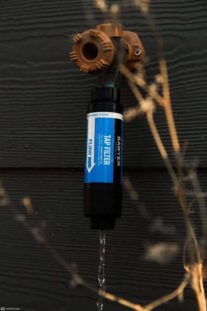 Sawyer Tap Water Filter The Sawyer Tap Filter removes biological contaminants, guaranteeing immediate clean drinking water when you need it most. Great to use when travelling, during boil alerts, or in emergencies when safe drinking water is compromised, the Tap Filter is easy-to-use and will filter to up to 500 gallons (1900 Litres) of clean drinking water per day. It’s the ideal component for use during natural disasters such as floods, hurricanes, fires, and earthquakes. Hitting the road? Consider the Tap Filter your pocket-sized peace of mind for all questionable sources –– campgrounds, festivals, events, in RVs, and when traveling internationally. Filter your caravan water before it goes into the water tank or fillup from any tap while on the move. Features Designed for use with taps – Caravan / Vanlife, After Hurricanes / Cyclones, Boil Alerts or Traveling Overseas Removes 99.99999% of bacteria (salmonella, cholera, and E. coli), 99.9999% of protozoa (cryptosporidium and giardia), and 100% of microplastics Exceeds Environmental Protection Agency (EPA) recommended removal rates. Quality Tested 0.1 Micron Absolute Filtration Tiny ‘U’ shaped hollow fiber micro-tubes trap contaminants while allowing the filtered water to freely pass through at a high flow rate. Impossible for harmful bacteria (like salmonella or leptospirosis), protozoa, or cysts like E. coli, Giardia, Vibrio cholera, and Salmonella typhi to pass through the filter. Immediate Filtration Simply attach the filter to a standard faucet tap (17-20mm in size) or hose bib spigot, turn on the water, and filter into a clean container. Specifications Weight: 113.3g Includes: 1x 0.1 Micron Absolute Hollow Fiber Membrane Tap Filter, 1x Backwash Adapter, 1x Threaded Spigot Adapter, 1x Tap Sizer Gauge, 1x Extension Hose, 1x Dual Threaded Adapter Longevity: Up to 500 gallons/day (1900 Litres/day) for up to 5-10 years (With Regular Backflushing) Filter Material: Hollow Fiber Membrane Removes: Bacteria, Protozoa, E. Coli, Giardia, Vibrio cholerea, Salmonella Typhi, Leptospirosis, and microplastics (SP134)