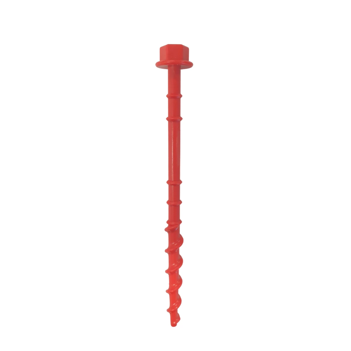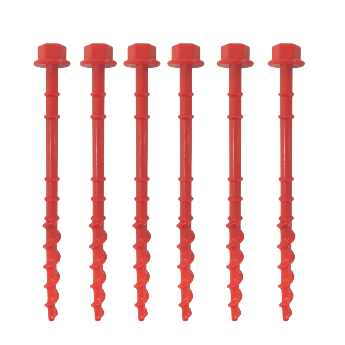 Small Spiral Auger Screw In Tent & Awning Pegs 6 Pack 20cm This set of 6 spiral Auger Screw in Tent Pegs. Each peg’s auger diameter is 15mm which is designed to hold in soft sand or soil and will hold many times better than a standard hammer in peg. Features: Easy to screw in with a cordless drill, spanner Red colour to easily locate in sand, dirt or grass Perfect for Caravan Awnings, Tents & Tarps 6 Pack of Auger Pegs 200mm length Specifications:: Dimensions: 200 x 15mm (each) Peg Head Bolt size: 17mm Weight (each): 24g Material: High impact ABS (RBE374-NC)