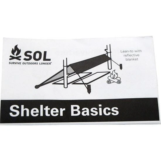 SOL Emergency Shelter Kit Always be prepared to survive an unexpected night out, whether in a drenching rain or snowstorm, with this ultra-light emergency shelter kit you will always be able to stay dry and warm in almost any weather. Designed for use in the Northern Hemisphere and colder climates, the Emergency Shelter Kit would be as useful in Australia to provide shade and protection. Features Heavy Duty Heat Reflective Blanket – 152cm x 243cm, this blanket is 2.5 times thicker than standard Survival Blankets Reflect Heat – Reflects 90% of your body heat back to you to keep you warm Ultra C Stakes – Lightweight anodized aluminum stakes are just what you need to keep the shelter staked down Ideal for Rain Covers, A-Frame Shelters, Lean-to Shelters, Snow Trenches, Emergency Blankets & Shelter Specifications Includes: 1x 2.5 mil Heavy Duty Survival Blanket 152cm x 243cm 4x 10.6cm Ultra-C Aluminium Stakes 4x Glow In the Dark Cord Tensioners 4x 2.5mm Reflective Guy Lines – 243cm 1x Emergency Shelter Rigging Instructions (4140-1757-1)