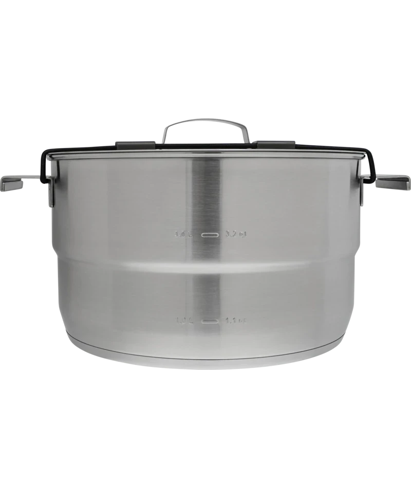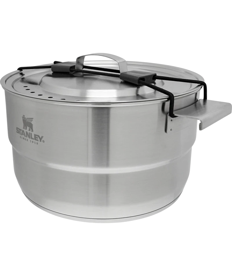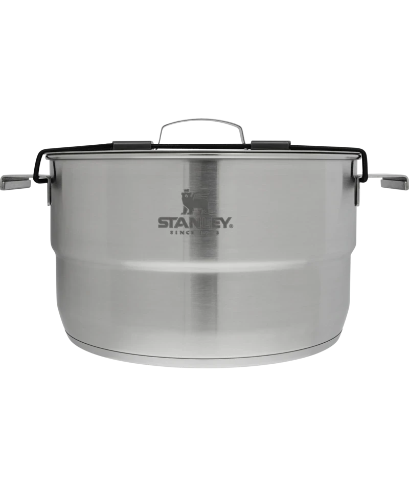 Stanley 11 Piece Camp Pro Cook Set 4.5L You’ve got 5 friends sitting around the campfire. It’s dinner time. They’re hungry. What do you do? Quick, grab yourself a cutting board, 2 stainless steel pots, a base pan, two silicone trivet pot holders, and a deluxe spatula and serving spoon, AKA The Even-Heat Camp Pro Cook Set. The best part? When dinner’s done, clean-up is easy thanks to the stainless steel heat distribution, and it nests to make packing up a cinch. Have Dinner covered with the Stanley 11 Piece Camp Pro Cook Set 4.5L on your next camping trip. Features 11 Piece Cook Set – 1x 18/8 4.5L Stainless steel stock pot , 1x 18/8 Stainless steel sauce pan 1.8L, 2x Vented lids, 1x Frying pan 22cm diameter, 1x Collapsible cutting board, 1x Spatula with 2-piece handle, 1x Spoon with 2-piece handle, 2x Trivets, 1x Locking bungee 18/8 Stainless steel BPA-free Locking pot handle Nesting system Dishwasher safe Specifications Includes: 1x 18/8 4.5L Stainless steel stockpot , 1x 18/8 Stainless steel saucepan 1.8L, 2x Vented lids, 1x Frying pan 22cm diameter, 1x Collapsible cutting board, 1x Spatula with 2-piece handle, 1x Spoon with 2-piece handle, 2x Trivets, 1x Locking bungee Weight: 3.7kg Dimensions: 29.5L x 17W x 26.2H cm (10-09230-010)