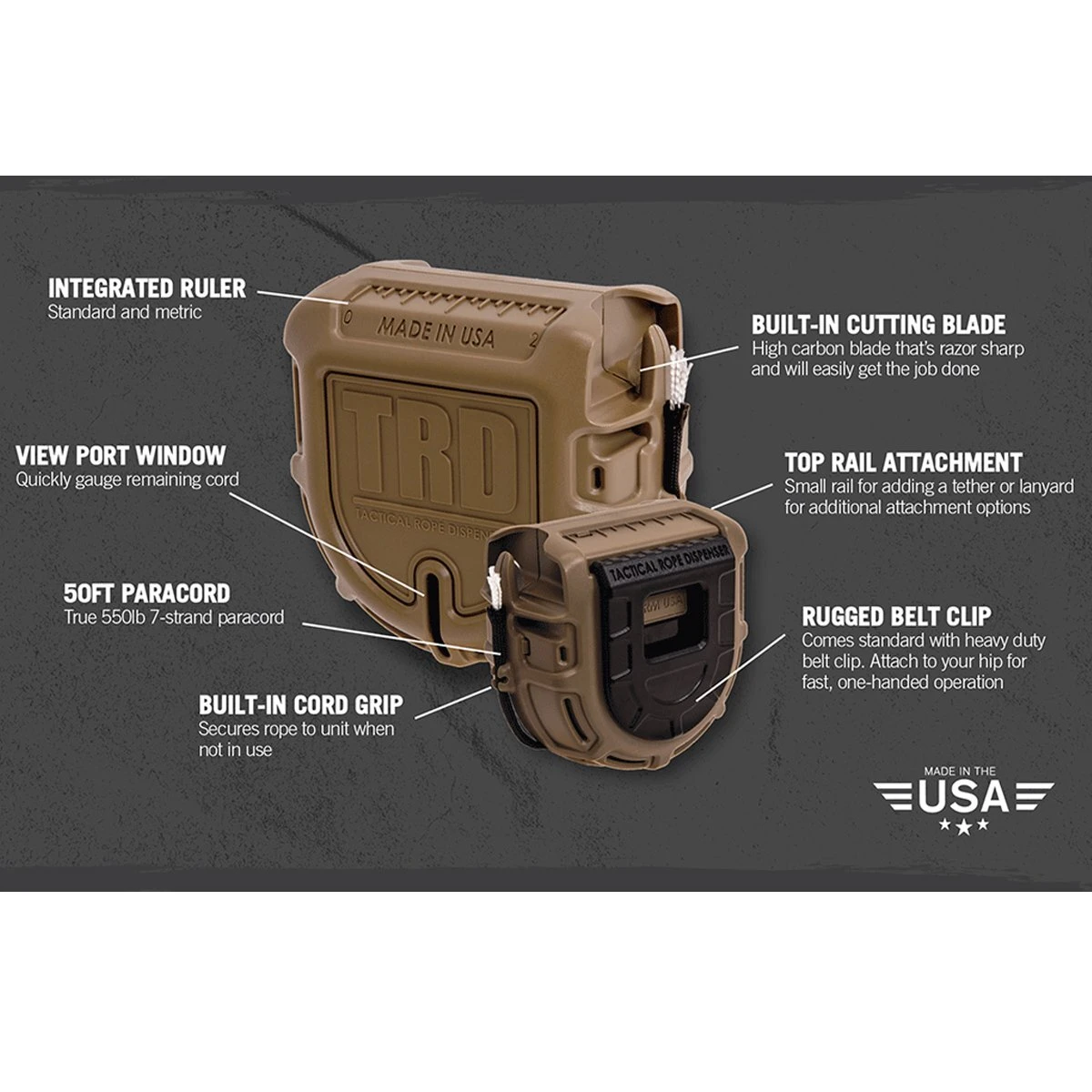TRD Tactical Rope Dispenser Clear MADE IN USA