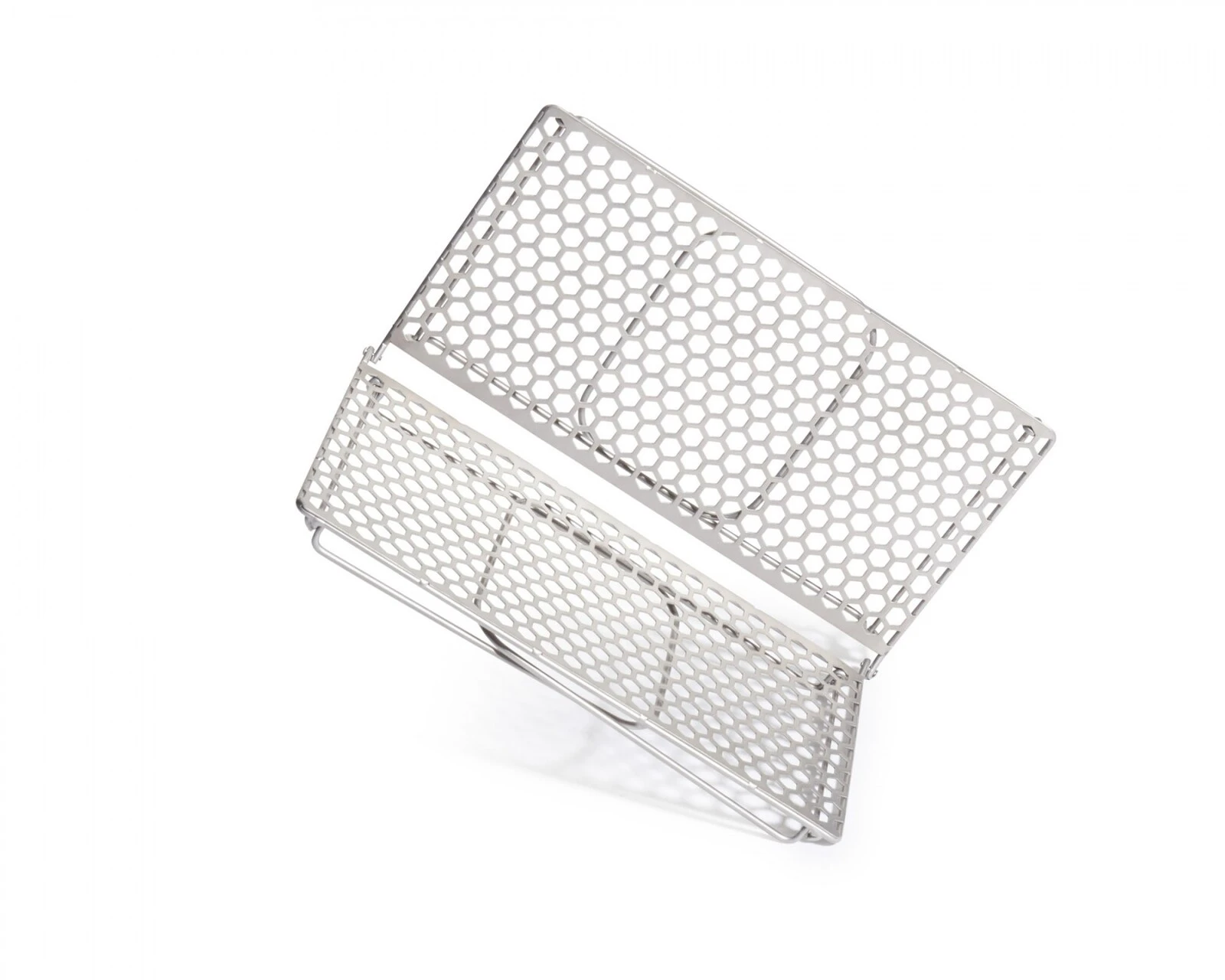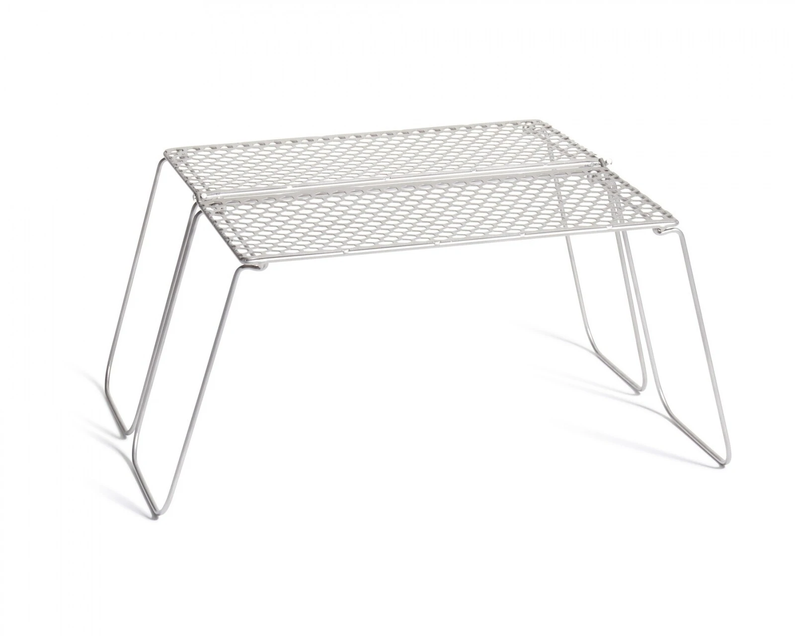 Reduce weight and bulkiness from your campfire grill with the Titanium BiFold Grill. Weighing in at just 3.7 ounces or 105 grams it is extremely light and compact. It’s BiFold system allows it to be folded up and stored in a small carry case making packing and carrying a breeze. The flat grill surface allows for much easier cleaning than typical grill rods. Its non-corrosive and biocompatible properties mean that no chemicals or impurities will leach into your food. All you’ll taste is your favorite delicious campsite meals. Features Folding grill surface and legs Strong, lightweight titanium construction Nylon protective case included Flat grill surface for easy cleanup Specifications: Weight: 3.7 ounces (105 grams) Length: 7.75 inches (19.6 cm) Width (closed): 4.0 inches (10.1 cm) Width (open): 8.25 inches (20.9 cm) Height (folded): 1.25 inches (3.1 cm) Height (unfolded): 4.5 inches (11.4 cm) Recommended maximum weight for grill to hold is 2.3kg (5 lbs) (T-488)