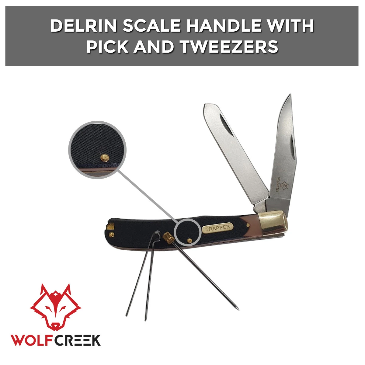 Wolf Creek 2 Blade Trapper Folding Knife With Pouch