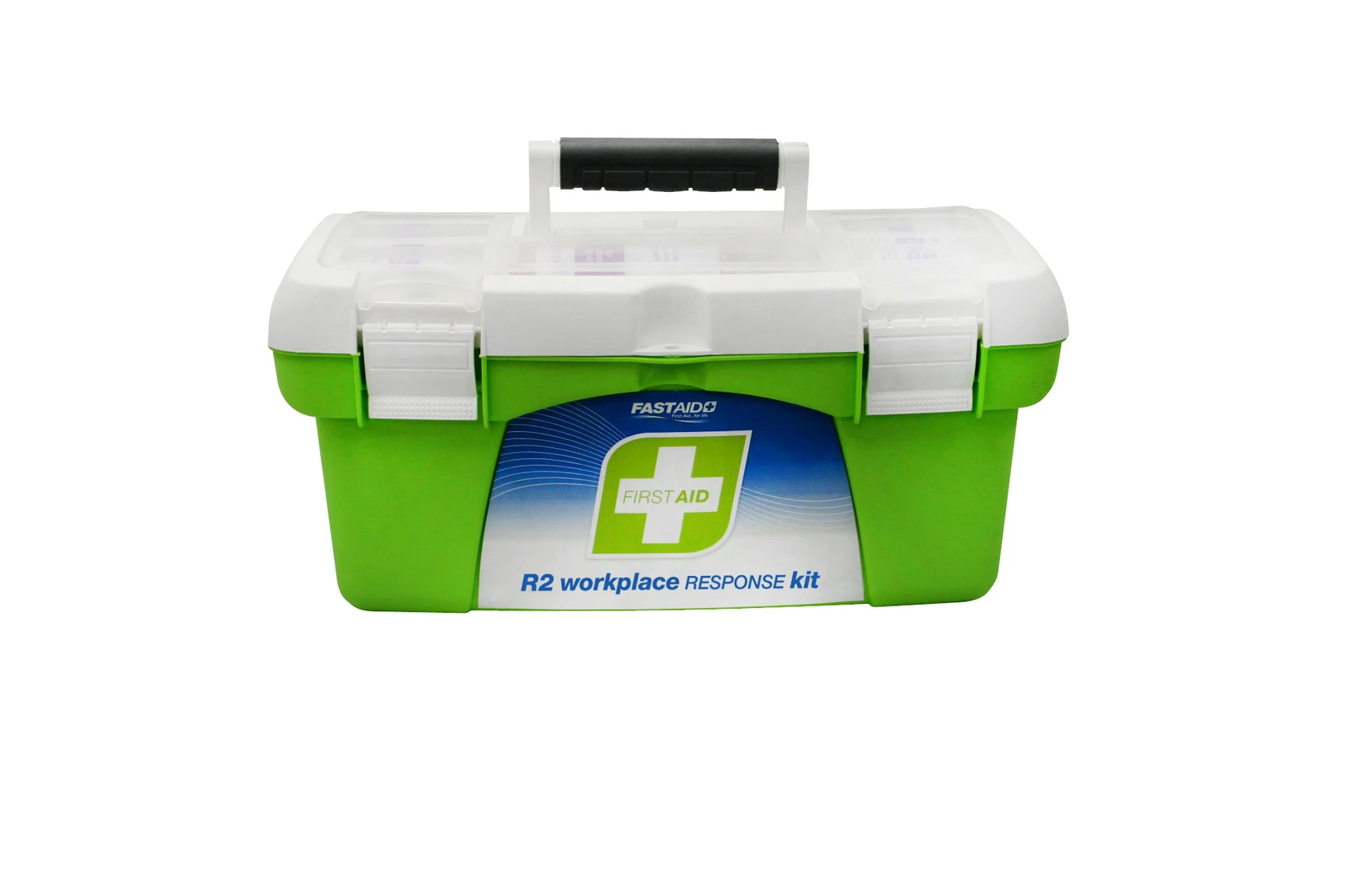 Workplace Response First Aid Kit in Portable Case You don’t want to be caught unprepared in a First Aid Emergency, you’ll have peace of mind in the workplace with this kit. The Workplace Response First Aid Kit is the most convenient travel First Aid kit designed in compliance for workplaces of up to 25 people. Features Compliance for workplaces up to 25 people Supplied in a Durable Plastic Hard Case with internal compartments and colour coded contents for easy identification, convenience and organisation. Complies with current workplace regulations and is designed for small to medium-sized workplaces. Complies with WHS 2016+ Regulations for Workplaces. Contains detailed contents specific to WHS requirements for Australian workplaces. Supplied in large handy Durable Plastic Hard Case tacklebox layout for easy use and portability Refills available (please contact us for refills) Complies with: Exceeds Standard AS2675-1983 (Size B), ARTG Registered No. 128314 (Australian Register of Therapeutic Goods) Specifications Weight: 2.75kg Size of case: 42cm x 23cm x 20 cm This Kit Includes: 50 x Adhesive Strips, Plastic (72 mm x 19 mm) 4 x Sterile Antiseptic Alcohol Wipe/Swabs 1 x Antiseptic Liquid Spray 50ml 10 x Non-Sting Antiseptic Wipe/Swabs, Sterile 1 x Clear Bowl, Galiput, 60ml 5 x Burn Gel Sachets (Hydrogel) 1 x Large Instant Cold Pack 1 x Sterile Combine Dressing (10 x 20 cm) 3 x White Conforming Bandages (5 cm) 3 x White Conforming Bandages (7.5 cm) 100 x Cotton Tips, Double Ended (7.5 cm) 1 x CPR Face Shield with non-return valve 1 x CPR Flowchart 1 x Heavy Crepe Bandage, Brown (10 cm) 5 x Pairs Large Gloves 1 x Emergency First Info Booklet 1 x Emergency Thermal Space Blanket, Silver 4 x Sterile Eye Pads 8 x Eye Wash Ampoule, 30ml ea 25 x Gauze Swab (7.5 x 7.5 cm) 1 x Green Kidney Tray 200ml 1 x Non Adherent Dressing (10cm x 10cm) 3 x Non Adherent Dressing (10cm x 7.5cm) 6 x Non Adherent Dressing (5cm x 5cm) 1 x Accident Report Notebook 1 x Pencil 1 x Roll White Medical Paper Tape (2.5cm wide) 1 x Small Resealable Plastic Bag 1 x Medium Resealable Plastic Bag 1 x Large Resealable Plastic Bag 6 x Iodine Swabs 12 x Assorted Size Safety Pins 1 x Stainless Steel Medical Scissors (12.5cm) 1 x Sharps Container 100ml 1 x Stainless Steel Splinter Probe / Tweezers (12.5cm) 10 x Disposable Splinter Probes (4cm) 2 x Large White Cotton Triangular Bandages 5 x Wound Closure Strips 1 x No.13 Sterile Wound Dressing 1 x No.14 Sterile Wound Dressing 1 x No.15 Sterile Wound Dressing 1 x Durable Plastic Hard Case with internal compartments and colour coded contents for easy identification, convenience and organisation Intended Purpose A convenient collection of equipment and materials for the rapid, initial treatment of an injury. Health Warning Always read the label and follow the Directions for use. (FAR222)