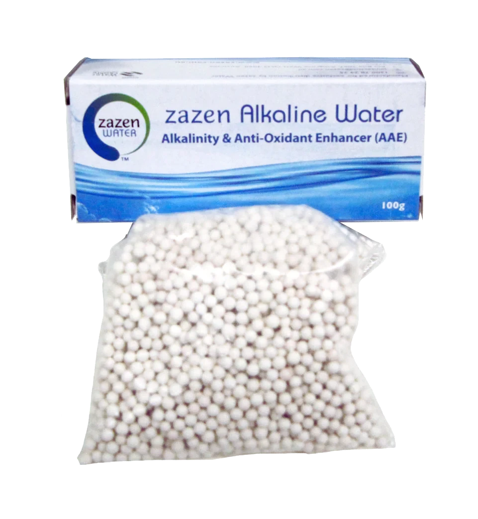 Zazen Alkalinity & Anti-Oxidant Enhancer Releases ionised magnesium to assist boost the alkalinity of the water – Replace every 12 months Zazen Alkalinity & Anti-Oxidant Enhancer helps to increase the alkalinity and health benefits of your drinking water by releasing ionised magnesium. Features Alkaline – Increases the pH and alkalinity, essential minerals and antioxidants in your water. Ionised Minerals – releases additional ionised minerals, further enhancing the alkalinity and pH of water. Anti-Oxidant – increases the antioxidant benefit by lowering the ORP of water, aiding in neutralising free radicals. Far Infrared – increases Far Infrared (vibrational energy) said to assist blood purification, promote growth and inhibit harmful metal ions Boosts pH of the water Specifications Lifespan: 12 Months Weight: 100g Compatible with Zazen Alkaline Water Filtration System (8010)
